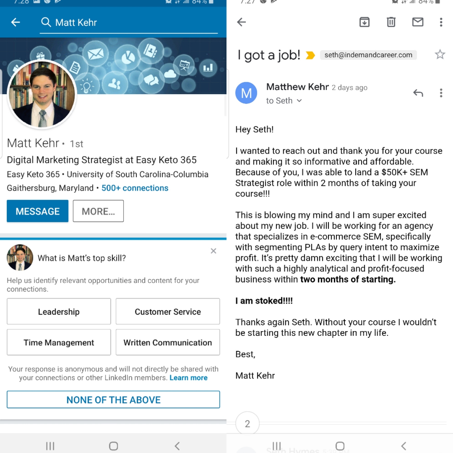 This is a short video Matt recently sent me summarizing his experience with the course and his new career, which he absolutely loves!
