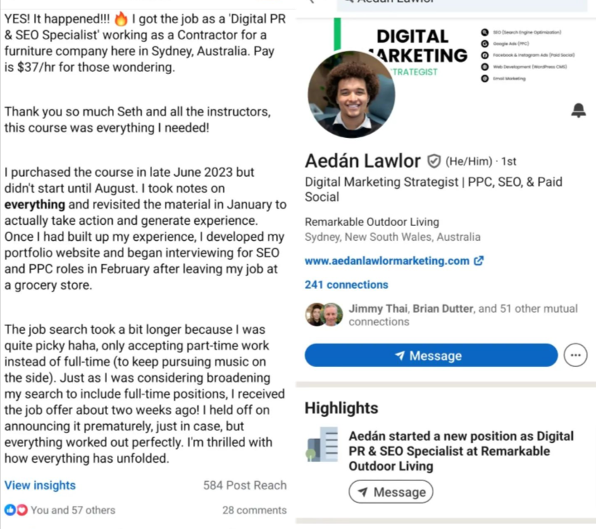 Seth Meeting FOUR STUDENTS Who All Got a Job at the Same Digital Marketing Agency in Orange Country, California.